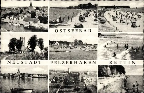 Ak Pelzerhaken Rettin Neustadt in Holstein, Badestrand, Totalansicht, Kirche