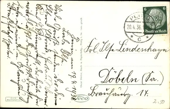 Zustand, siehe Scan, gelaufen, 1936 - ca 14 cm X 9 cm