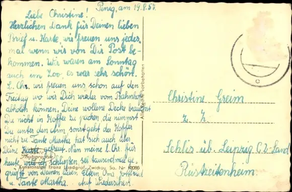 Zustand, siehe Scan, gelaufen, 1957 - ca 14 cm X 9 cm