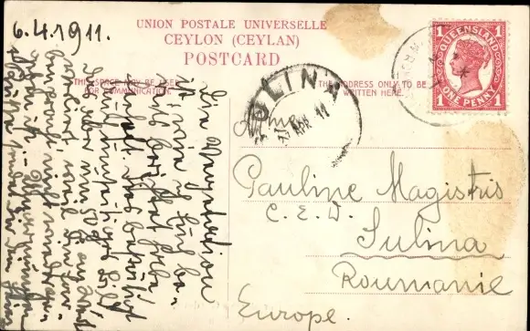 Zustand, siehe Scan, gelaufen, 1911 - ca 14 cm X 9 cm