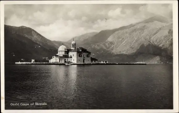 Ak Perast Perasto Montenegro, Gospa od Škrpjela, Die Madonna-Insel b. Perast