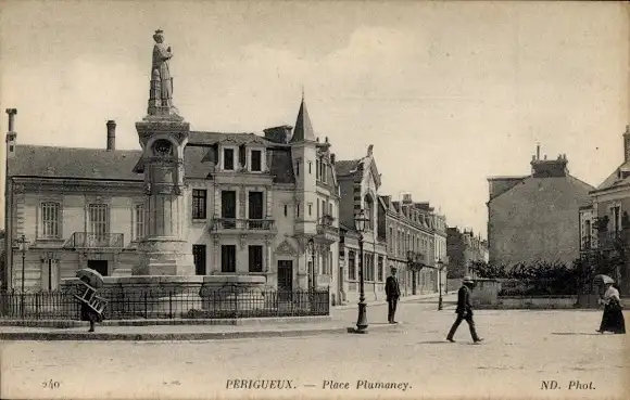 Ak Périgueux Dordogne, vue générale de la Place Plumaney