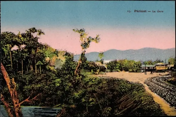 Ak Périnet Madagaskar, Bahnhof mit Umgebung