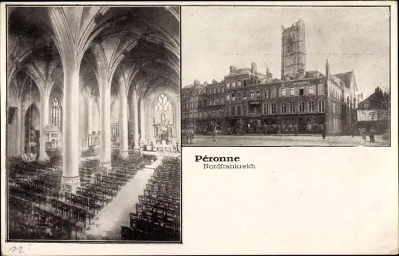 Ak Péronne Somme, Kircheninneres, Straßenpartie