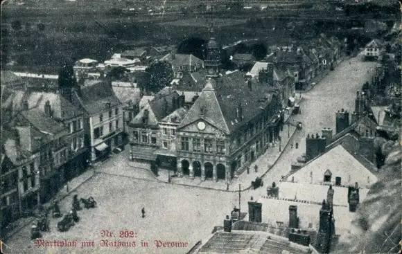 Ak Péronne Somme, Marktplatz, Rathaus, Vogelperspektive
