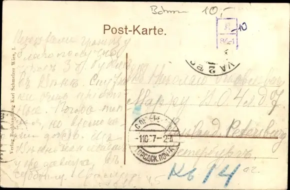 gelaufen, Eckknick rechts unten, Briefmarke entfernt, sonst guter Zustand