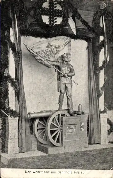 Ak Přerov Prerau Reg. Olmütz, Der Wehrmann am Bahnhof