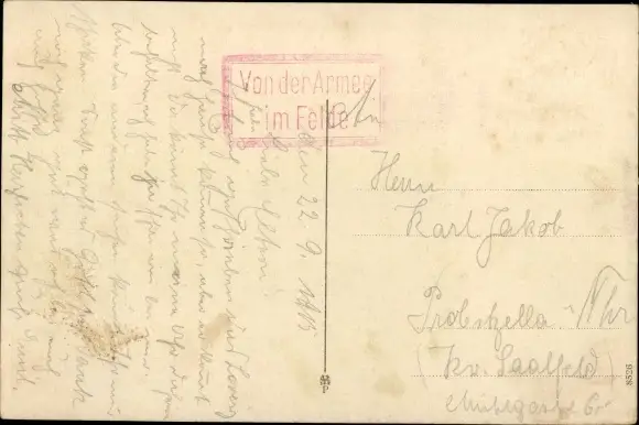 gelaufen 1915, Briefmarke entfernt, sonst guter Zustand