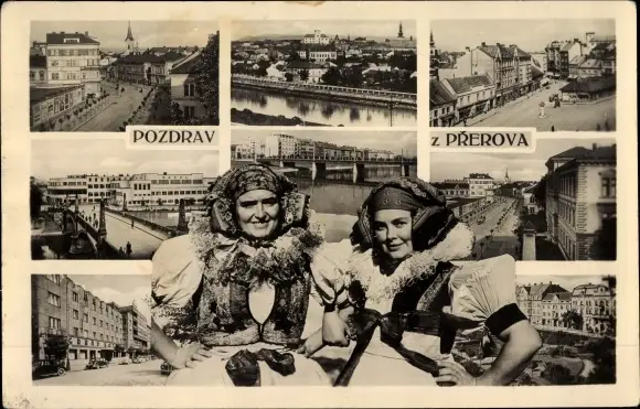 Ak Přerov Prerau Region Olmütz, Frauen in Trachten, Stadtansichten