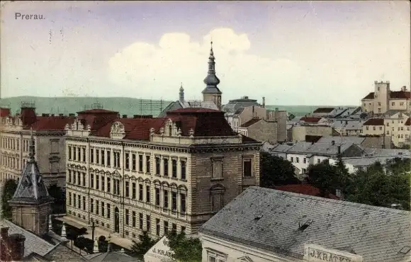 Ak Přerov Prerau Region Olmütz, Teilansicht mit Rathaus