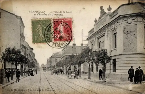 Ak Perpignan Pyrénées Orientales, Avenue de la Gare, Chambre de Commerce