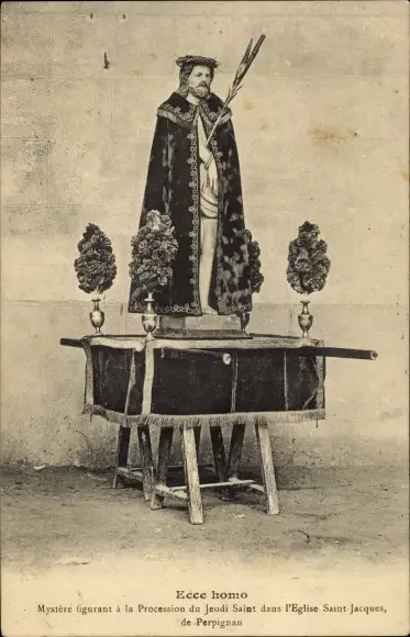 Ak Perpignan Pyrénées Orientales, Ecce Homo, Mystere figurant a la Procession du Jeudi Saint