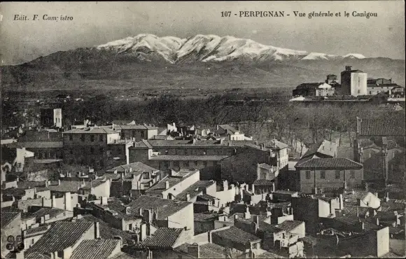 Ak Perpignan Pyrénées Orientales, Gesamtansicht und der Canigou