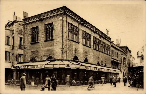 Ak Perpignan Pyrénées Orientales, Loge, Rue des Marchands, Grand Cafe de France