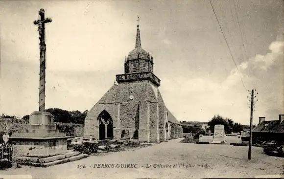 Ak Perros Guirec Côtes-d’Armor, La Calvaire, Kirche