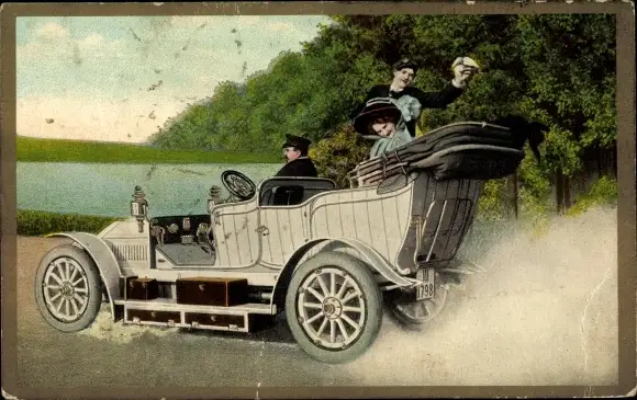 Ak Personen in einem Automobil mit offenem Verdeck, Chauffeur