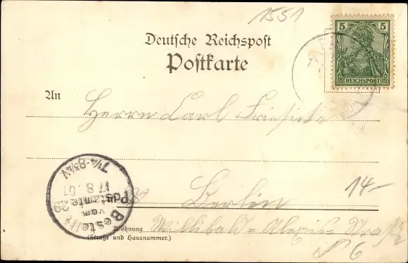 Zustand, siehe Scan, gelaufen, 1901 - ca 14 cm X 9 cm