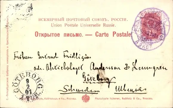 Zustand siehe Scan, gelaufen, 1901 - ca 14 cm X 9 cm