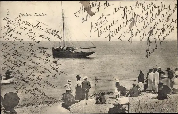 Ak Petites Dalles Seine Maritime, Partie am Strand, Segelboot