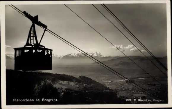 Ak Pfänderbahn bei Bregenz, Luftseilbahn in Fahrt, Panorama