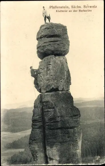 Ak Pfaffendorf Königstein an der Elbe Sächsische Schweiz, Barbarine, Kletterer