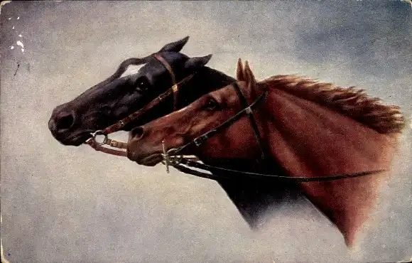 Ak Pferde, Kopfstudie, Zaumzeug, Portrait