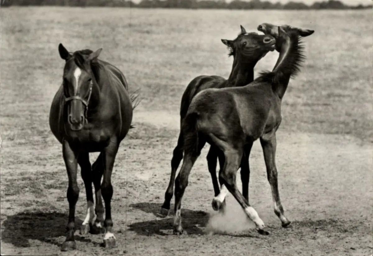 Ak Pferde, Traberstute und Fohlen
