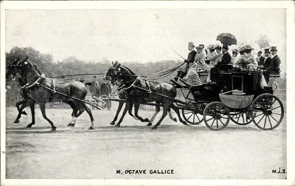Ak Pferdekutsche in Fahrt, Passagiere