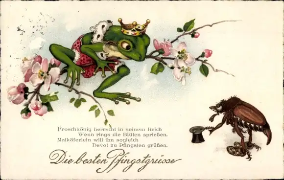 Ak Pfingstgrüße, Froschkönig und Maikäfer