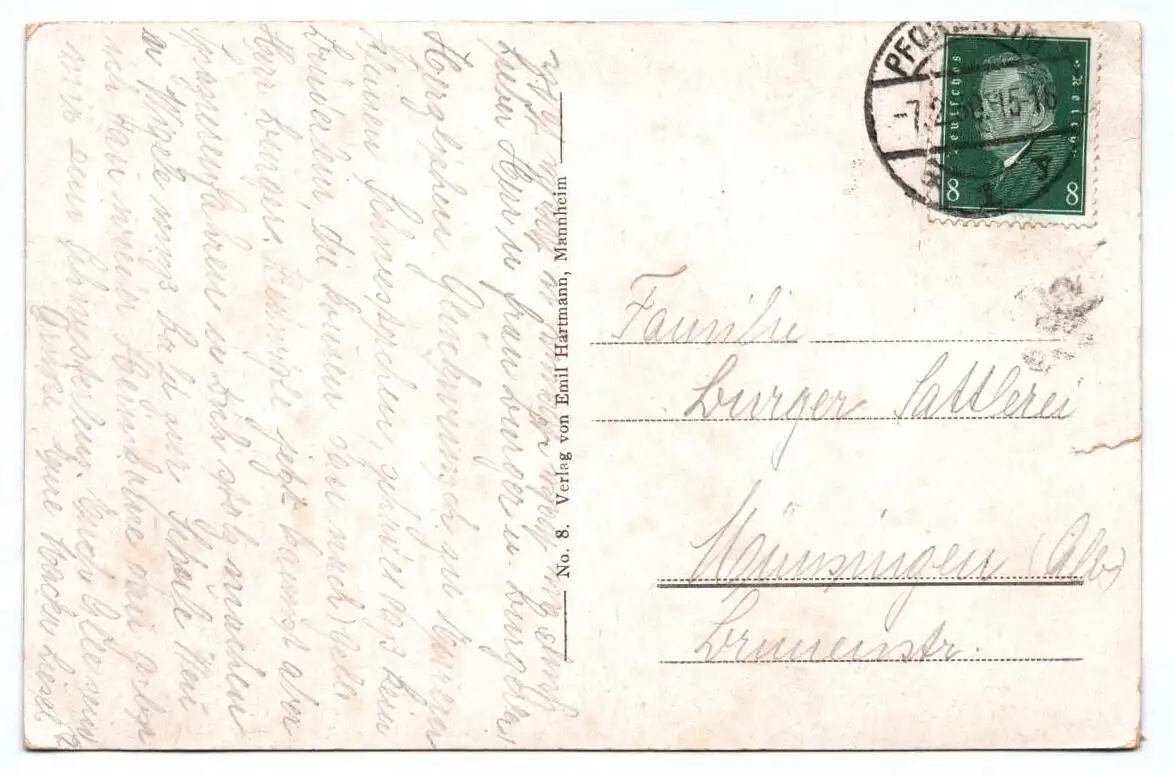 Erhaltung: bestossen und unsauber, linke Kante mit kleinen Einriss, alles weitere siehe bitte Scans.