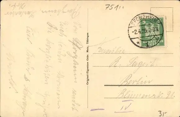 Zustand, siehe Scan, gelaufen, 1925 - ca 14 cm X 9 cm
