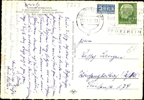 Zustand, siehe Scan, gelaufen, 1955 - ca 15 cm X 11 cm