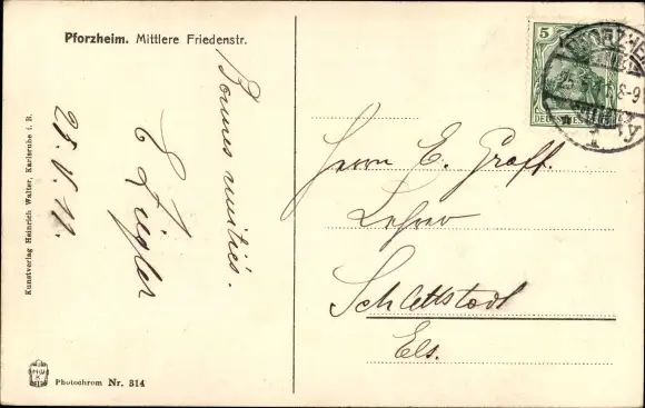 Ak Pforzheim im Schwarzwald, Mittlere Friedenstraße