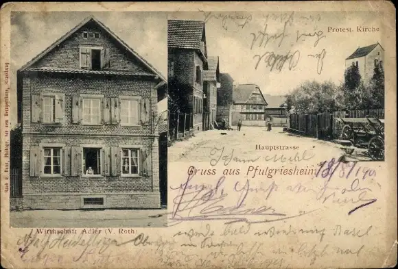 Ak Pfulgriesheim Bas Rhin, Protest. Kirche, Wirtschaft Adler