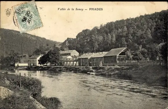 Ak Phades Vallee de la Semoy Ardennes, Flusspartie mit Blick auf Häuser, Wald