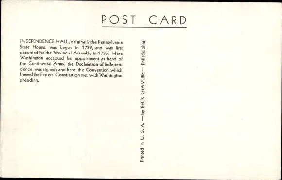 Ak Philadelphia Pennsylvania USA, Independence Hall, Denkmal