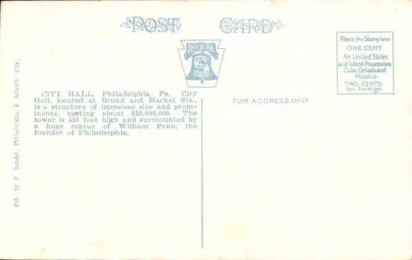 Ak Philadelphia Pennsylvania USA, Rathaus
