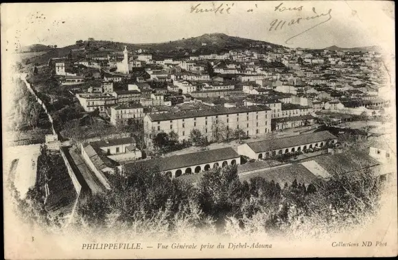 Ak Philippeville Algerien, Vue générale prise du Djebel Adouna