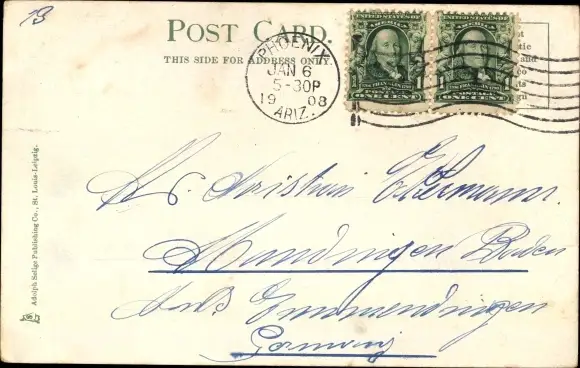Zustand, siehe Scan, gelaufen, 1908 - ca 14 cm X 9 cm