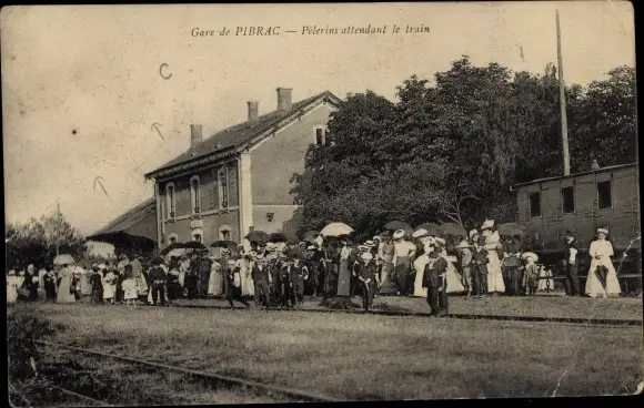 Ak Pibrac Haute Garonne, Pèlerins attendant le train