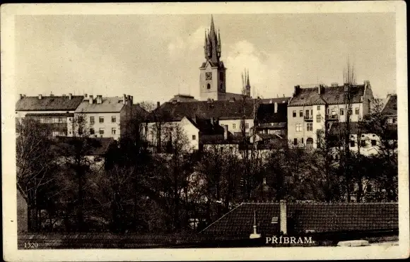 Ak Příbram Pibrans Mittelböhmen, Wohnhäuser, Kirche