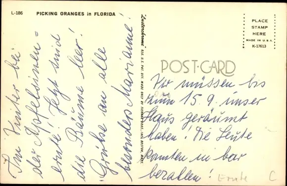 Ak Picking Oranges in Florida, Orangen-Ernte