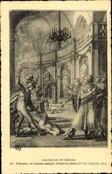 Ak Pierre Corneille en Images, Polyceute brisant les idoles