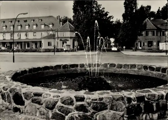 Ak Pieskow Bad Saarow in der Mark, Am Johannes R. Becher Platz, Brunnen