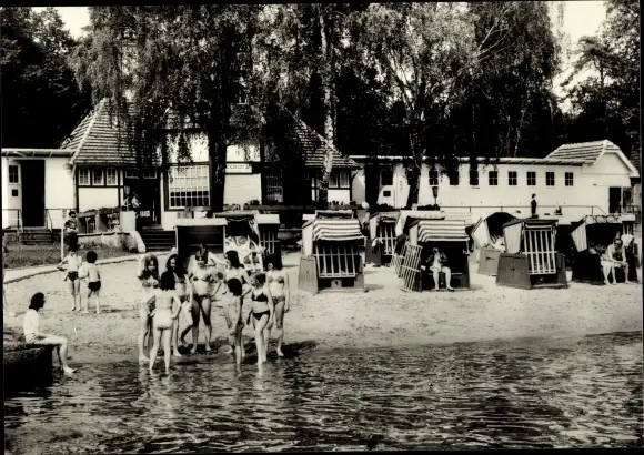 Ak Pieskow Bad Saarow in der Mark, Seebad, Strand, Badegäste