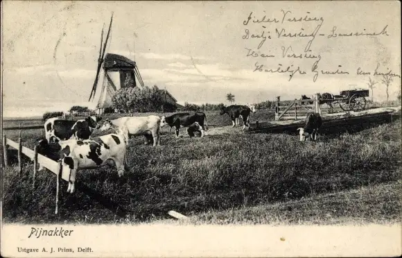Ak Pijnakker Pijnacker Südholland, Molen, Kühe