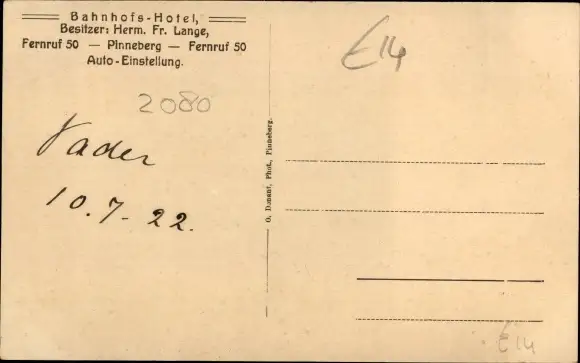 Zustand, siehe Scan, ungelaufen- Inh. Herm. Fr. Lange - ca 14 cm X 9 cm
