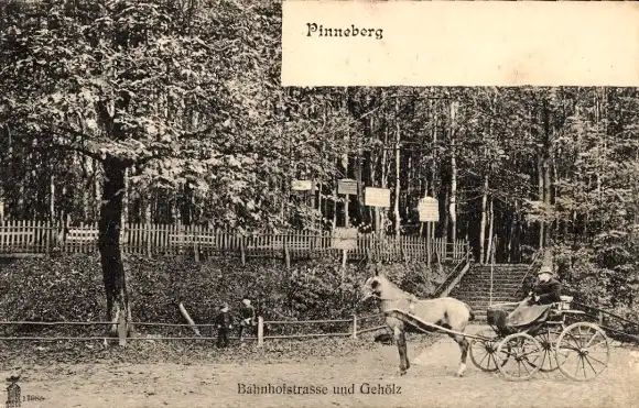 Ak Pinneberg in Holstein, Bahnhofstraße und Gehölz, Kutsche