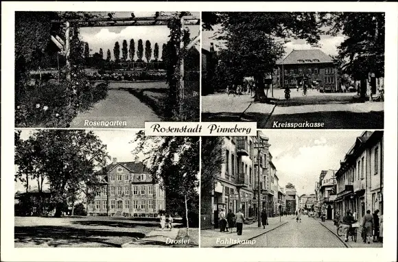 Ak Pinneberg in Holstein, Rosengarten, Kreissparkasse, Drostei, Fahltskamp