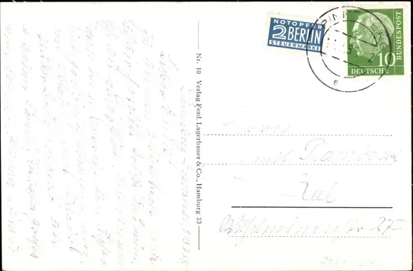 Zustand, siehe Scan, gelaufen, 1955 - ca 14 cm X 9 cm